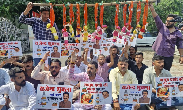 छिंदवाड़ा में जहरीली कफ सिरप से एक दर्जन मासूम बच्चों की दर्दनाक मौतों के विरोध में मध्यप्रदेश कांग्रेस के प्रदेश प्रवक्ता विवेक त्रिपाठी के नेतृत्व में कांग्रेस और एनएसयूआई कार्यकर्ताओं ने जोरदार विरोध प्रदर्शन किया।