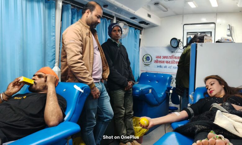 नव अपराजिता सोशल फाउंडेशन ने लगाया रक्तदान शिविर,पुरुषों के साथ महिलाओं ने भी किया रक्तदान