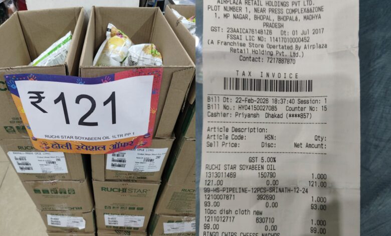 मैनेजर से शिकायत करने पर भी मामले को गंभीरता से नहीं लिया गया। जब संबंधित तेल पैकेट की बिलिंग कराई गई तो बिल में उत्पाद का वजन स्पष्ट रूप से अंकित नहीं पाया गया, जिससे पारदर्शिता पर प्रश्न उठते हैं।घर पहुंचकर अन्य सामान की जांच करने पर एक डोर मैट पर प्रदर्शित ऑफर भी बिल में लागू नहीं पाया गया, जबकि दूसरी डोर मैट पर 30 प्रतिशत छूट का उल्लेख था।